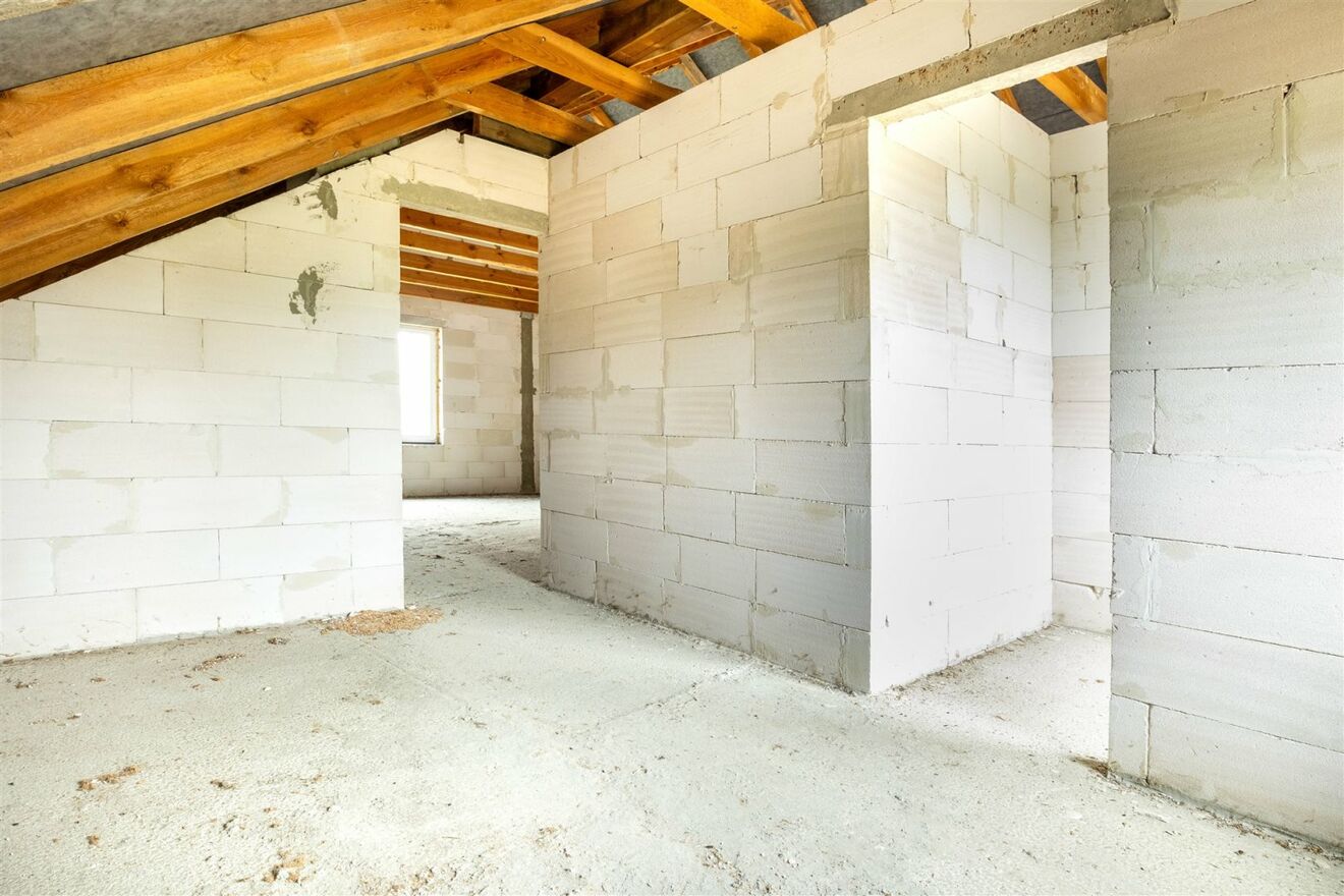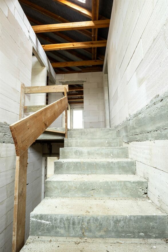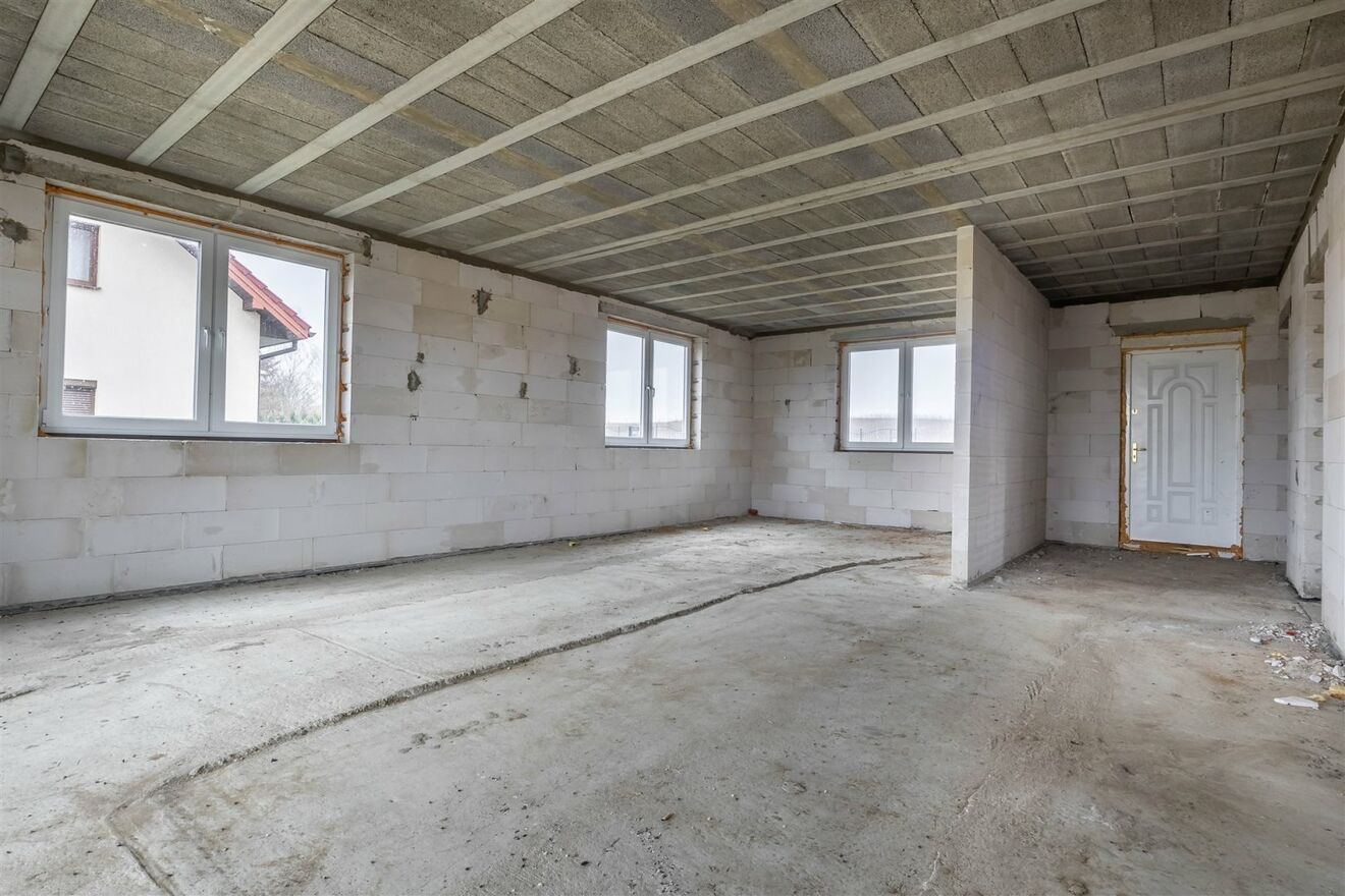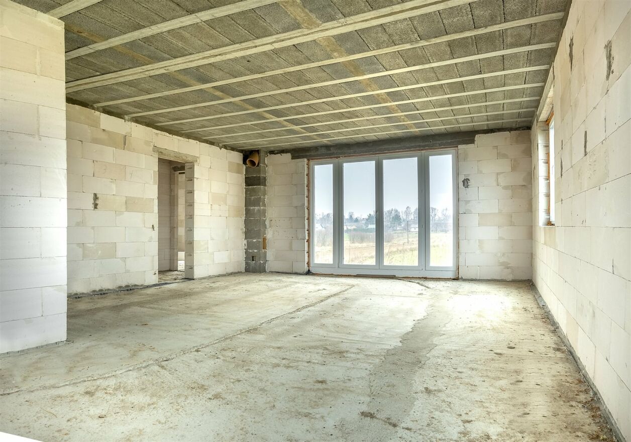 Fundamenty zaizolowane i docieplone. Stropy teriva. Okna pcv, w tym dwa duże okna tarasowe w salonie oraz w jednej sypialni na parterze, z wyjściem na słoneczny taras. Wewnątrz schody betonowe.