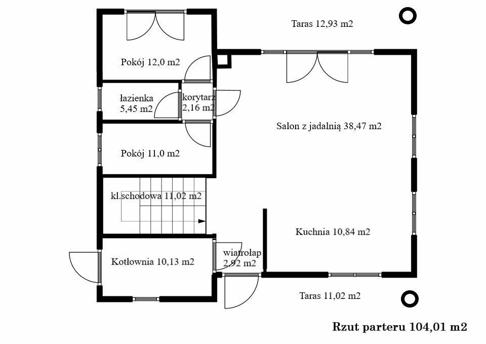 Powierzchnia użytkowa parteru wynosi 82,86 m2, zaś całkowita 104,01 m2