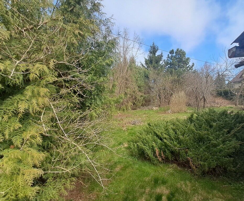 Działka jest bogato porośnięta drzewami i krzewami. Bardzo ładnie